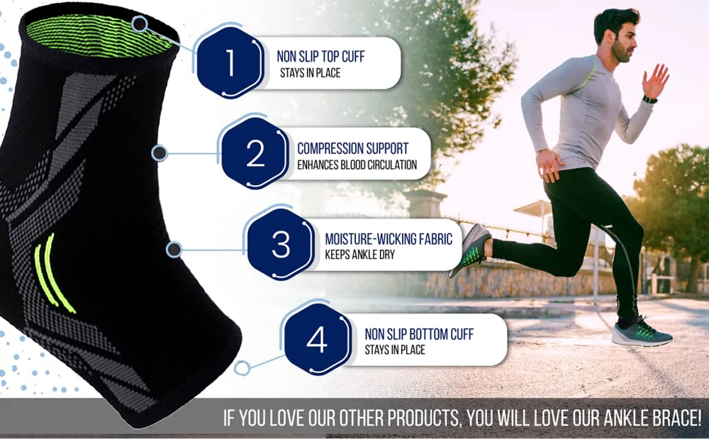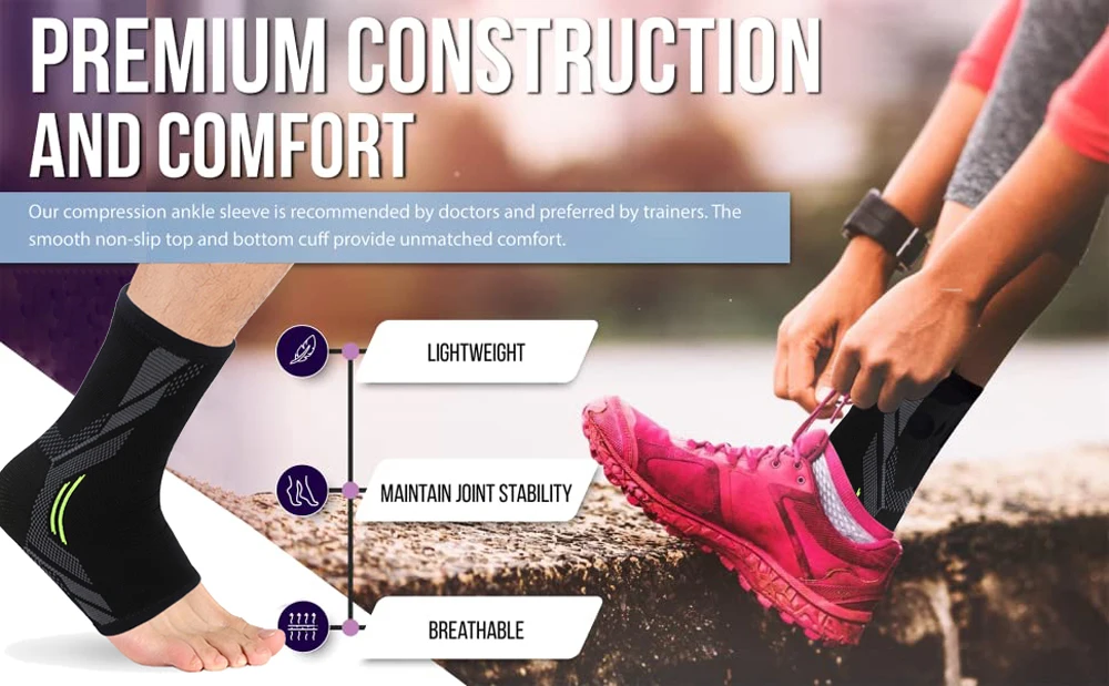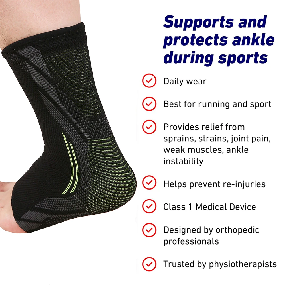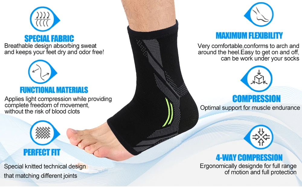 1. The ankle support is useful for easing discomfort of torn muscles and tendons, and protects against chronic ankle strain, sprains and fatigue caused by sports.